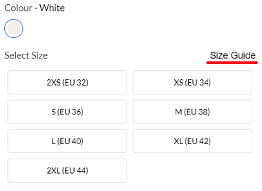 You can view detailed measurements and the size charts of the products by clicking on the "Size Guide" button on the product page.